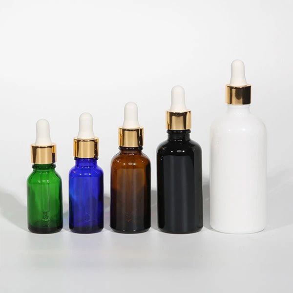 Konstrukcja tych butelek z zakraplaczem z czarnego szkła jest inspirowana butelkami z odczynnikami w laboratorium chemicznym. Używamy ciemnoniebieskiego, zielonego i brązowego, aby naśladować wygląd różnych butelek z odczynnikami w laboratorium chemicznym. Jednocześnie wykonaliśmy kawał dobrej roboty w szczegółach. Czarny wzór na butelce pomalowaliśmy również starannie, imitując ślady pozostawione na butelce przez różne odczynniki. Jednocześnie konstrukcja butelki z zakraplaczem daje klientom poczucie przeprowadzania eksperymentów chemicznych podczas jej używania, co zwiększa zainteresowanie procesem doświadczania. Nadal zrobiliśmy złotą obróbkę na korku, a górna część wykonana jest z białej gumy.